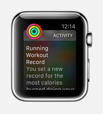 It has beautiful-looking activity functionality like this. Each ring shows how far you are from your daily target for each of: exercise; low-level activity; and from taking breaks from sitting down.