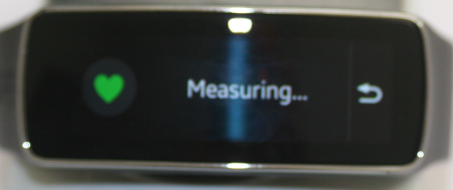 Display is initially HORIZONTAL which favours being worn on the inside of the wrist however for ‘normal’ wear on the outer wrist Samsung have enabled a VERTICAL display. The vertical display well works but sometimes limits what can be shown on the screen. How you wear the device is also a factor for the position of the OPTICAL HR device. Having the display on the inner wrist means that the OPTICAL HR is also on the inner wrist – compare this to the Microsoft BAND where the recommended way of wearing has the display on the INNERÂ wrist *BUT* the sensor for that BAND is on the opposite side. Also consider that many optical HR sports watches have the sensor underneath the watch face. So it seems that everyone expects the sensor to be on the OUTSIDE of the wrist. So we’ll need the VERTICAL display for the SAMSUNG GEAR FIT.