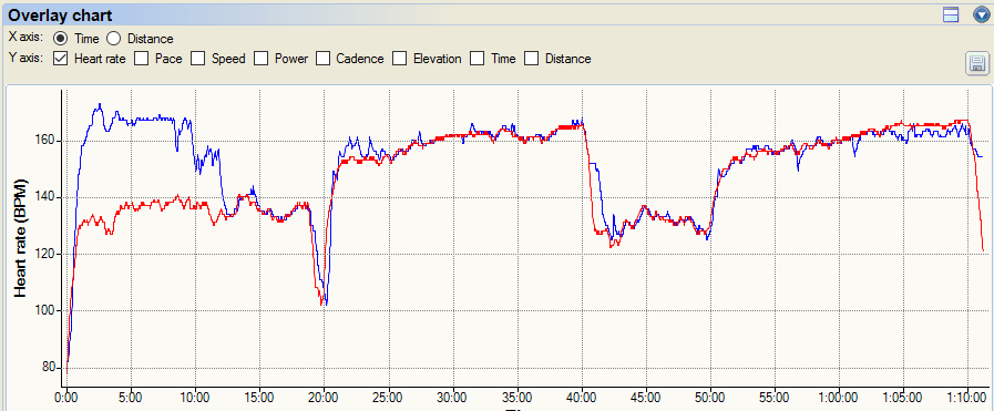 Much has been said about Fitbit’s heart rate accuracy. Let’s clear this up. Optical heart rate FROM ANY VENDOR is NOT MEDICALLY accurate. All wrist-based optical heart rate devices throw wobblies from time-to-time. Fitbit is no different from the rest as this shows; it’s a bit rubbish at the start but actually very good once it settles down.