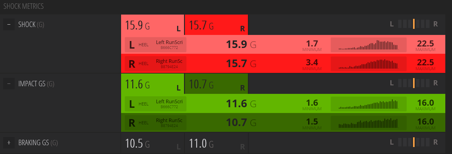 I would be interested to see how the metrics varied over various flat-paces. For example over one or several runs I will run at various paces (let’s assume the run is on an indoor track). Let’s take various pace ranges across all runs and look at the metrics at those different paces. (NB Shock IS looked at over the whole population at different pace levels).