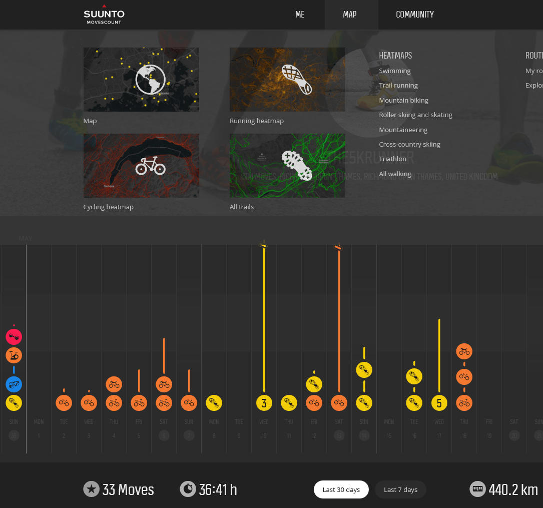 Here are some interesting screen grabs to give you a flavour of the MOVESCOUNT platform online, some are worth a look if you are not familiar with MOVESCOUNT. Of particular interest might be: Heat Maps to find new routes; training plans; unusual lap and data comparisons; and community comparisons eg answering: how does someone who did a 3 hour marathon train?