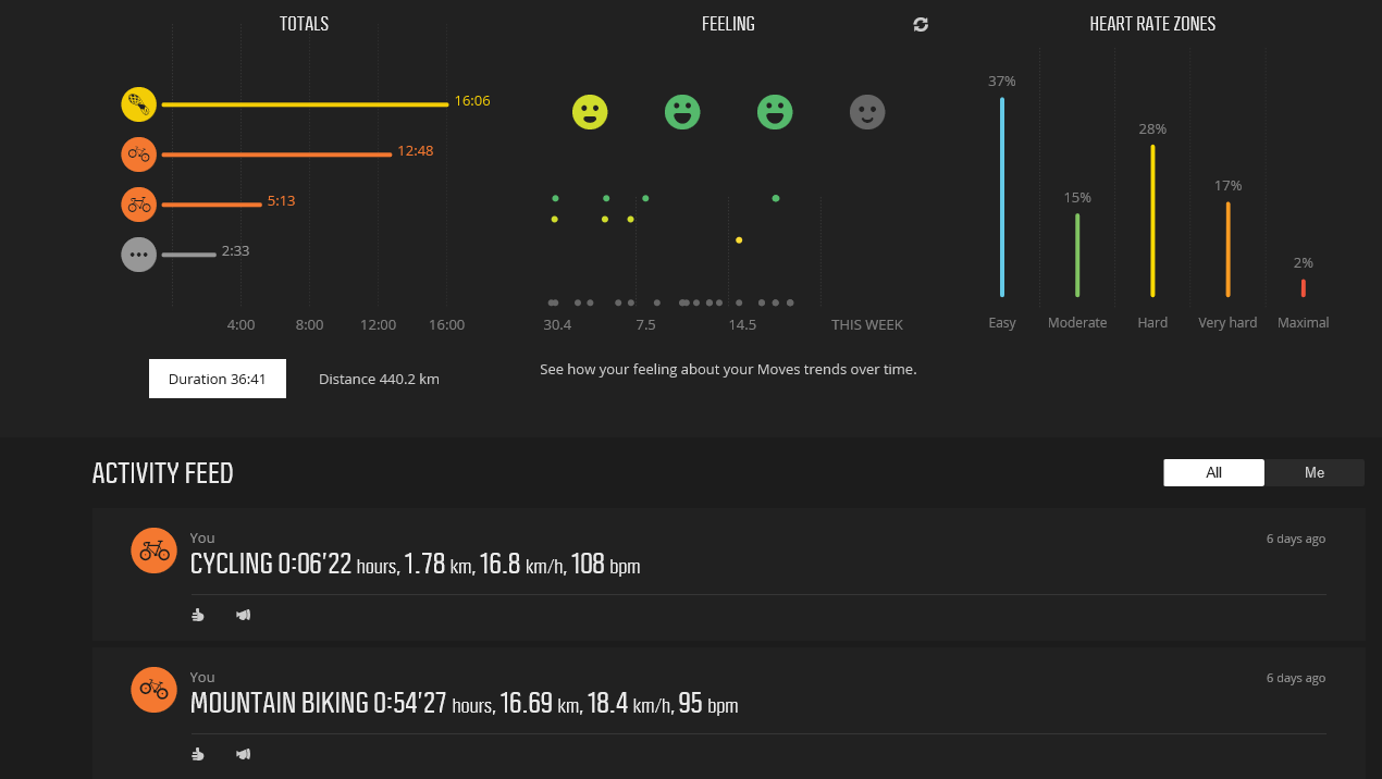 Then there is the online MOVESCOUNT platform. That covers what the app covers and quite a lot more besides. There are 3 kinds of sports data platforms: rubbish ones; general expansive platforms like Garmin Connect and Suunto MOVESCOUNT; and more analytic ones like Training Peaks.
