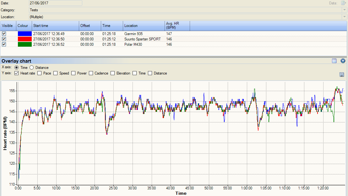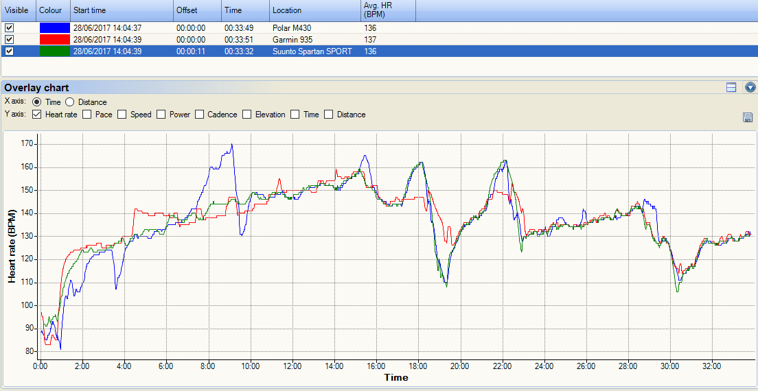 There are many factors affecting optical HR accuracy and the accuracy can sometimes seem to boil down to a personal thing, specific to you. IF you are looking for accuracy that previous point SHOULD give you some cause for concern when you buy any optical HR device. Below you can see the Garmin 235 and Polar M430; both of their optical sensors have worked GREAT on me….it might not be the same for you. Indeed I have had real problems with Garmin’s top-end Fenix 5x which, for me, wasn’t as good as the cheaper Garmin 235. Sigh.