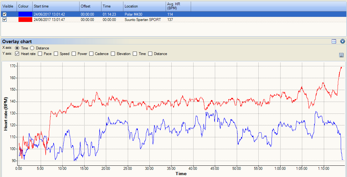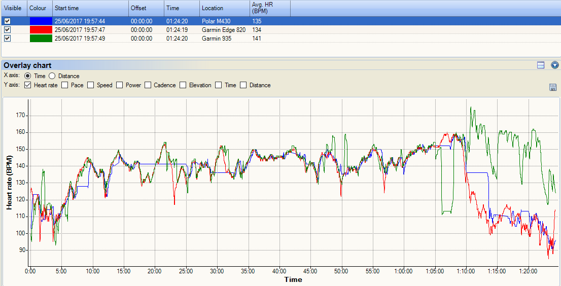 There are many factors affecting optical HR accuracy and the accuracy can sometimes seem to boil down to a personal thing, specific to you. IF you are looking for accuracy that previous point SHOULD give you some cause for concern when you buy any optical HR device. Below you can see the Garmin 235 and Polar M430; both of their optical sensors have worked GREAT on me….it might not be the same for you. Indeed I have had real problems with Garmin’s top-end Fenix 5x which, for me, wasn’t as good as the cheaper Garmin 235. Sigh.