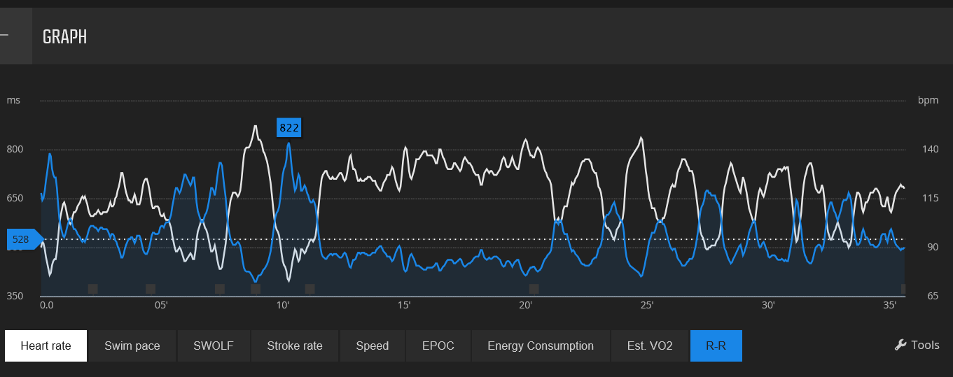 Also, I’ve been wondering about the R-R data in movescount. It’s too symmetrical, and the exported *.fit file doesn’t contain any RR data. So I think the optical sensor doesn’t record R-R data in the watch, but it’s some kind of conversion from hearbeats to miliseconds.