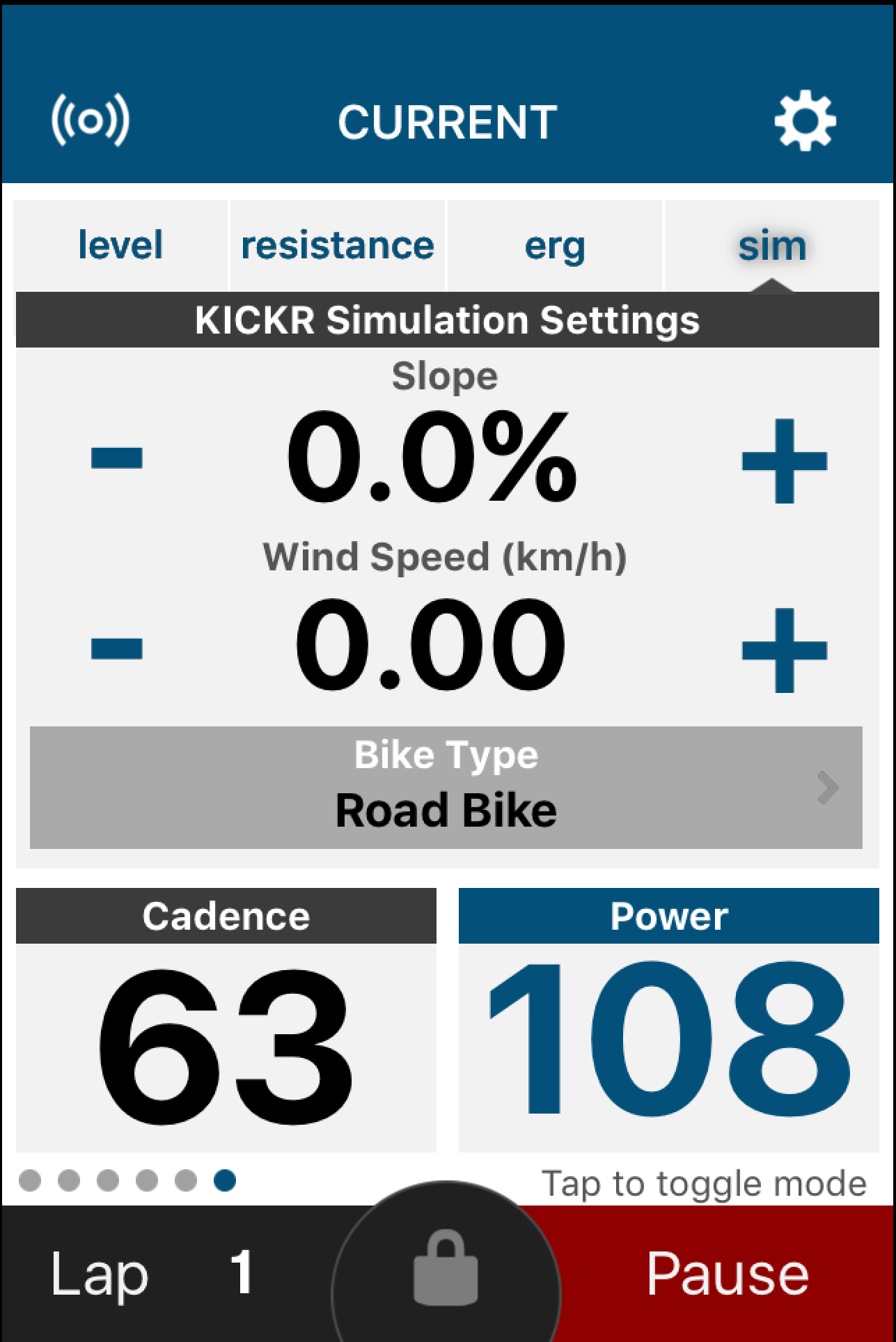 Mode 4: Sim – You specify weight, bike type, riding position, headwind, tyre size and grade, and then the KICKR models the power/speed curve to simulate YOUR outdoor riding experience.