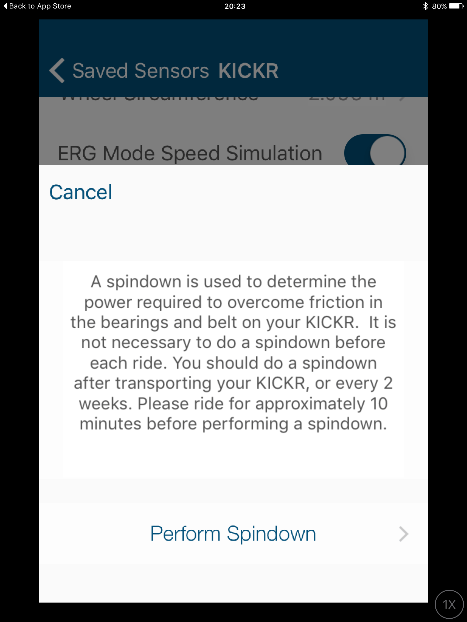 Bi-weekly calibration is required and is called SPINDOWN as you speed up to 38km/h and then freewheel down as the KICKR tests the brake. It’s quick to perform and there’s no harm in doing it before every ride.