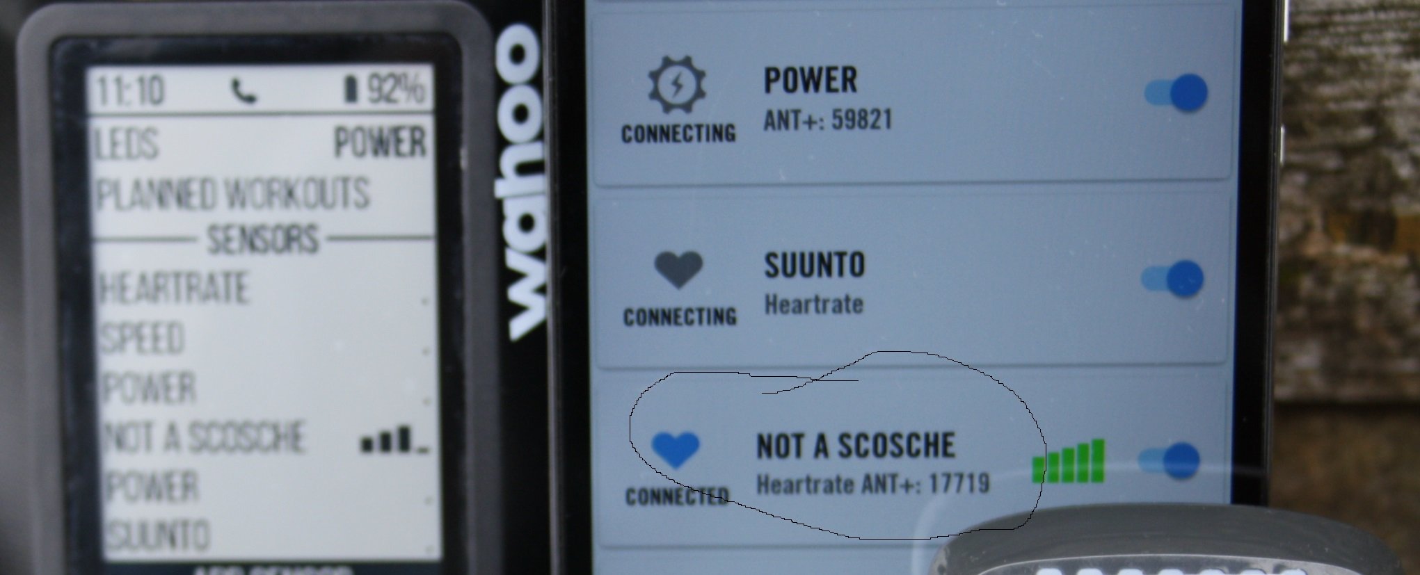 - For dual band sensors the WAHOO officially prefers to pair by Bluetooth rather than ANT+, although as I was preparing a photo to show that with a Scosche/OH1 competitor it decided to default to ANT+ to confuse me. #sigh Maybe it was already paired & active somewhere else? (It wasn’t)