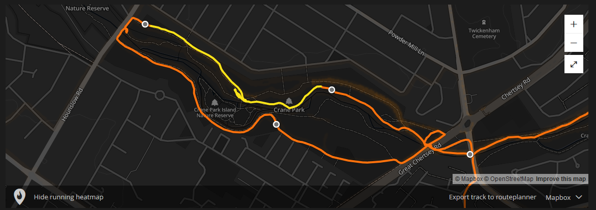 I have ‘done’ Crane Park parkrun before and have visited it on a few occasions for pleasure but today was the first time I’d run there from home. Hence the long run aka “it’s further away than I thought“. I’m looking forward to a rest day tomorrow, so this run certainly felt harder than it should have done coming on the back of lots of consecutive days of ‘stuff’.
