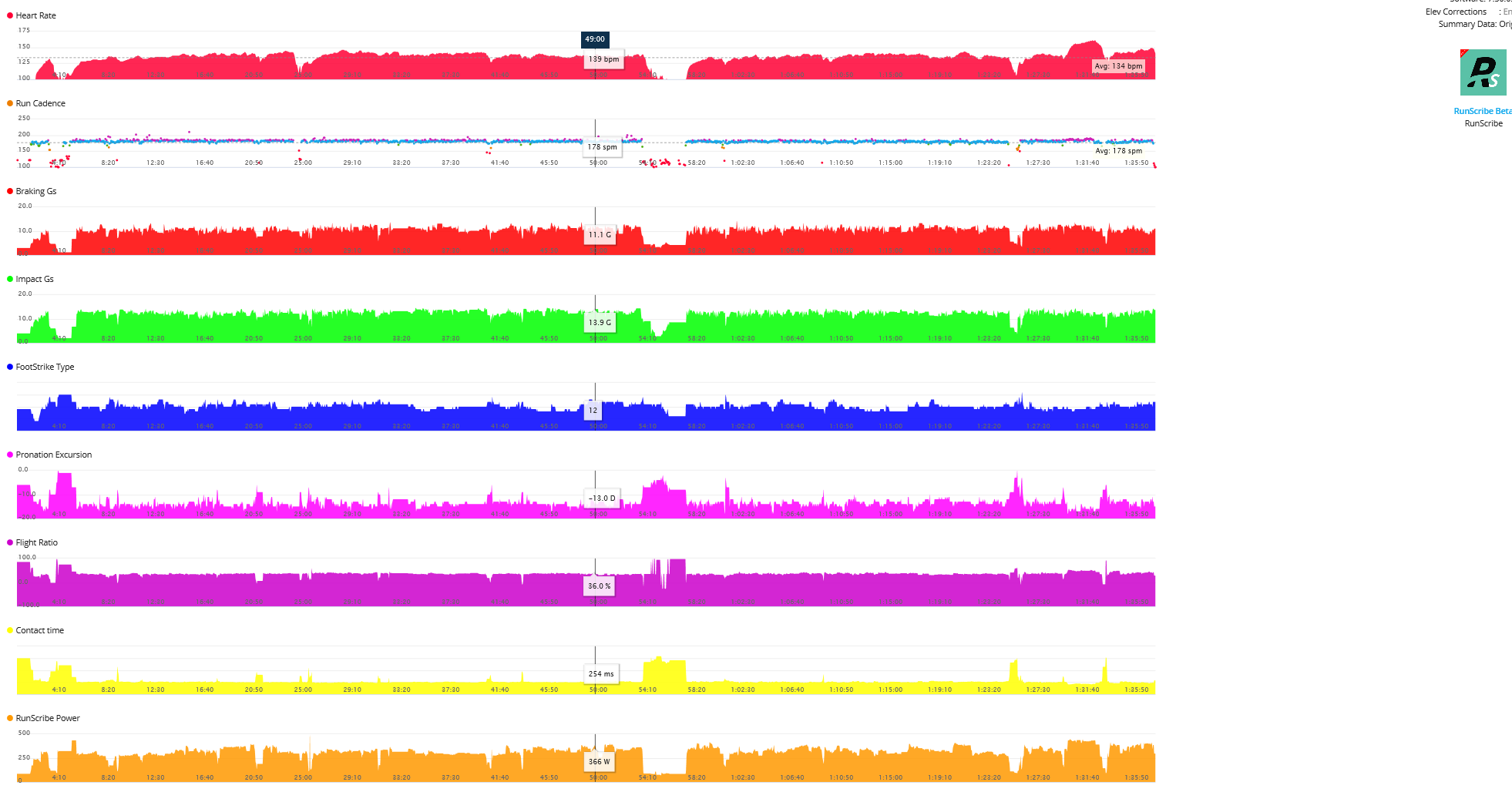 As you can see, below, all the fancy RunScribe metrics found their insightful way onto Garmin Connect later when I got back home.