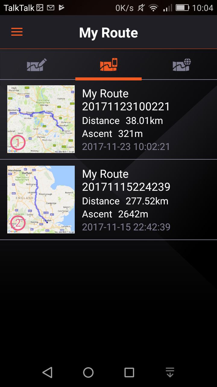 A route can be created either online or on the app, either method requiring an internet connection. So you CAN create a route in the middle-of-nowhere, as long you are linked to the net. I found the app most useful for “I am HERE take me to THERE” type routing, whereas the online route creation allowed more intricacy to be added to a pre-planned route.
