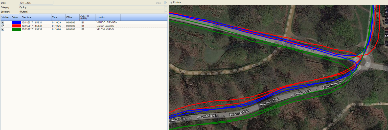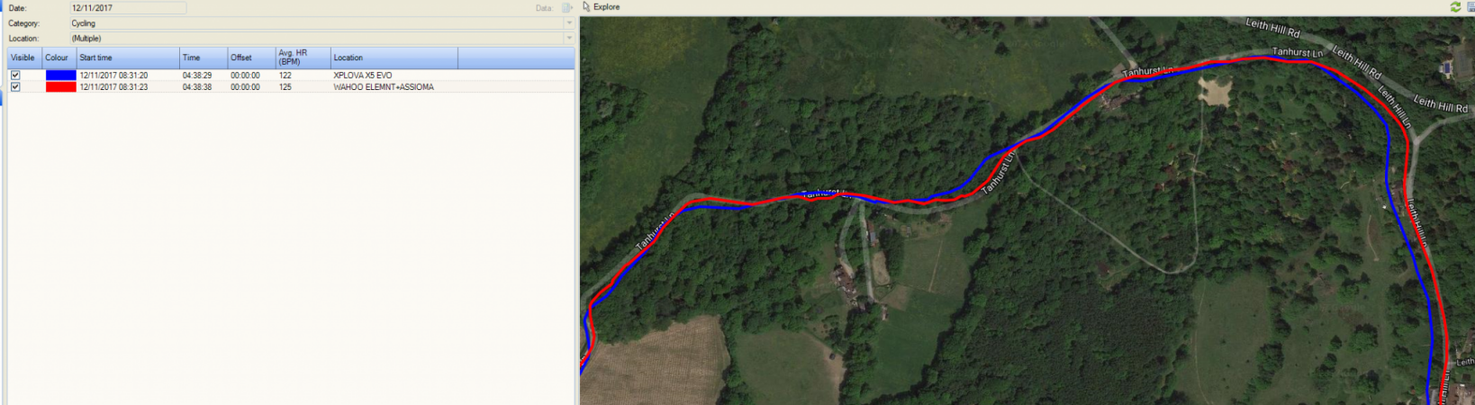 Not quite so good here for either device where trees and hills are involved and the X5 is not quite as good as the WAHOO. But that sort of performance is relatively normal.