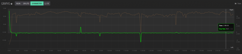 The following slide show contains the 4 graph types at the top of the previous image. You toggle through; RUN, SPLITS, SYMMETRY and L/R. Like this…