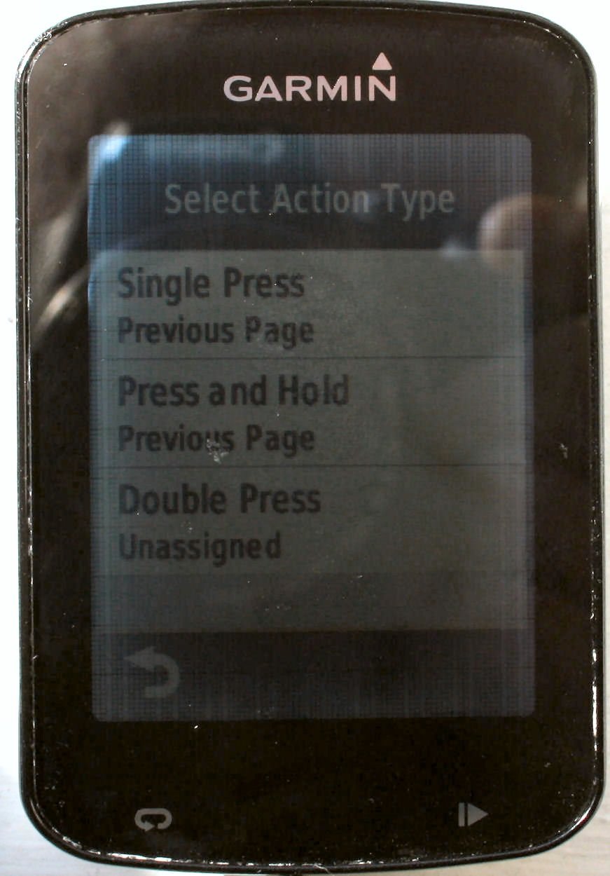 The meaning of what happens when you press the top button (switch A) is handled on the head unit. Thus there will be variation between new head units. Here are some of the options you get with the Garmin Edge 820.
