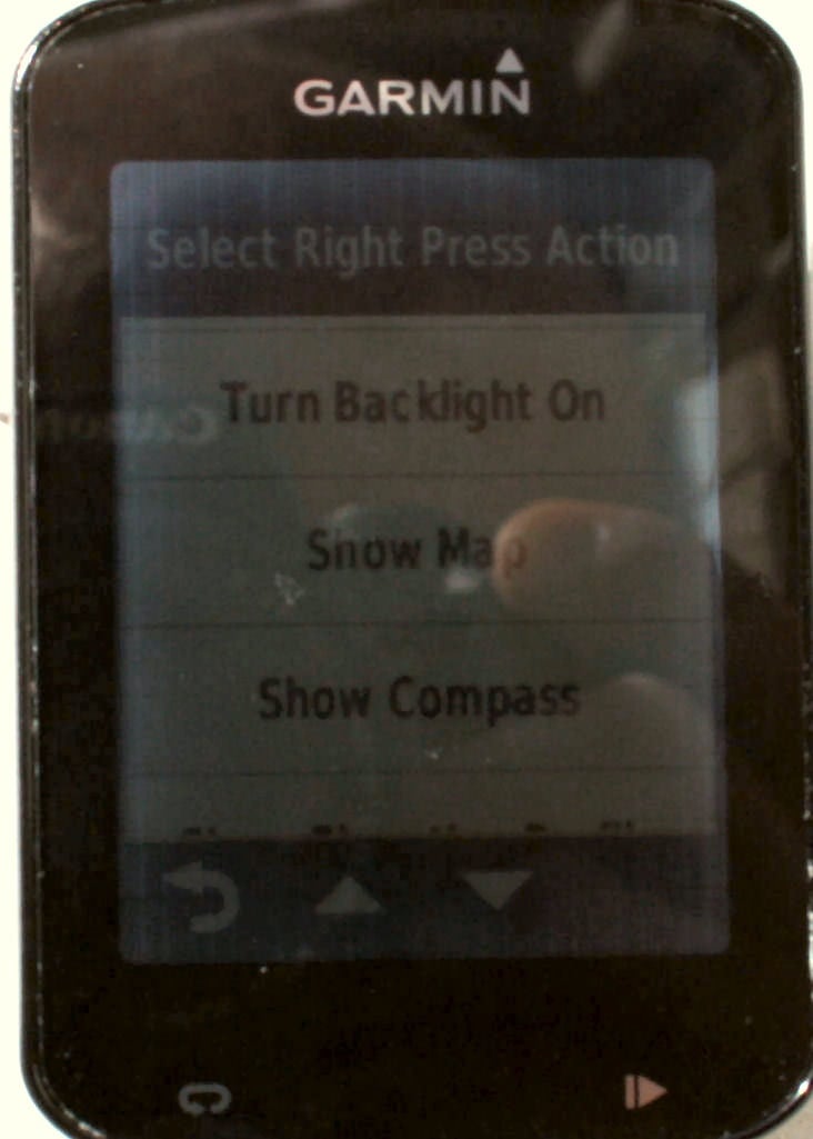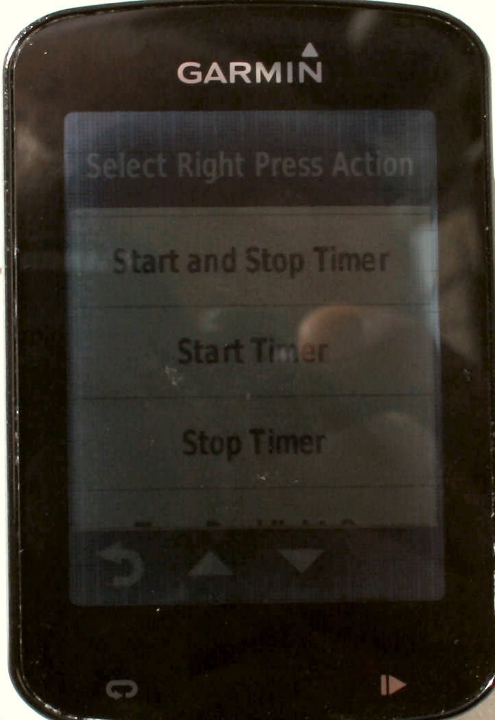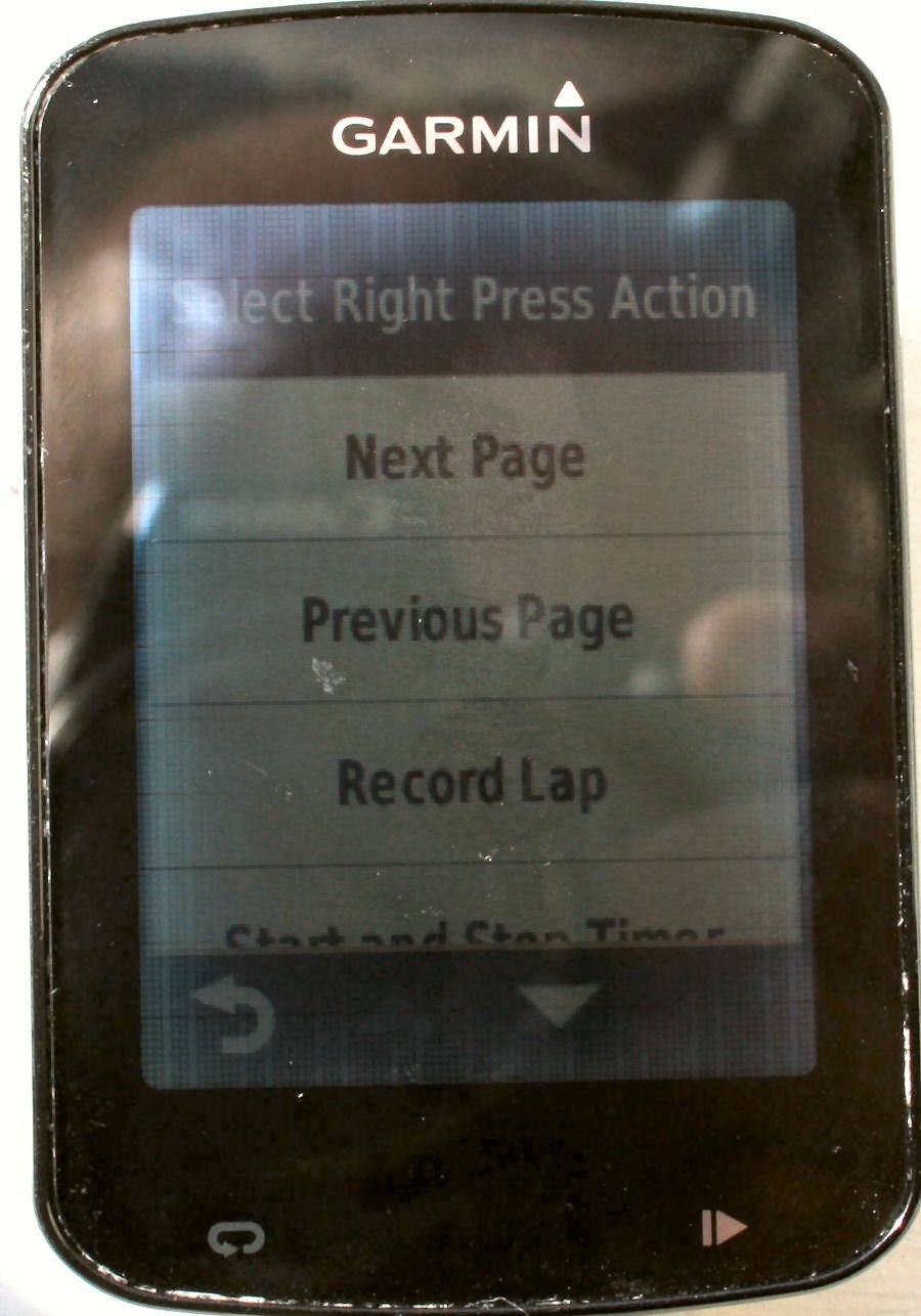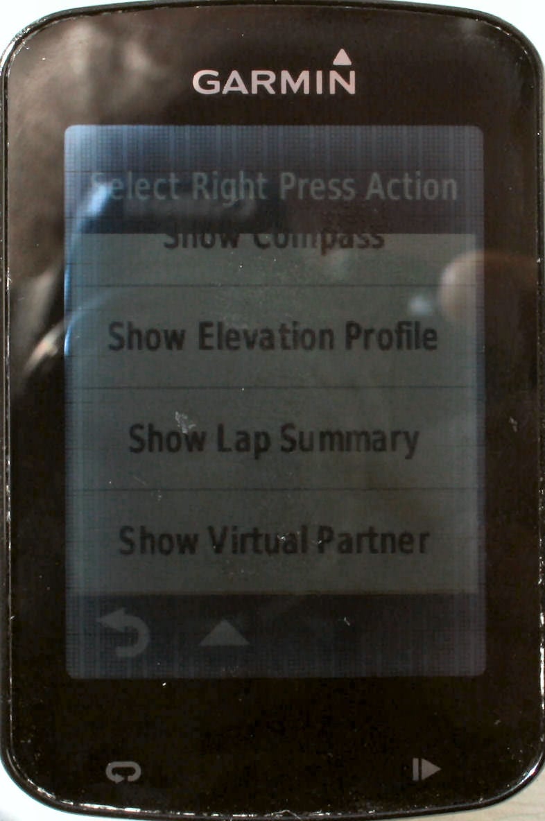 You can configure all these actions: Next Page; Previous Page; Record Lap; Start and Stop Timer; Start Timer; Stop Timer; Turn Backlight On; Show Map; Show Compass; Show Elevation Profile; Show Lap Summary; and Show Virtual Partner. I can certainly see several scenarios where I would find those useful, had I already preconfigured the right one 🙂 Still, it’s all very clever.
