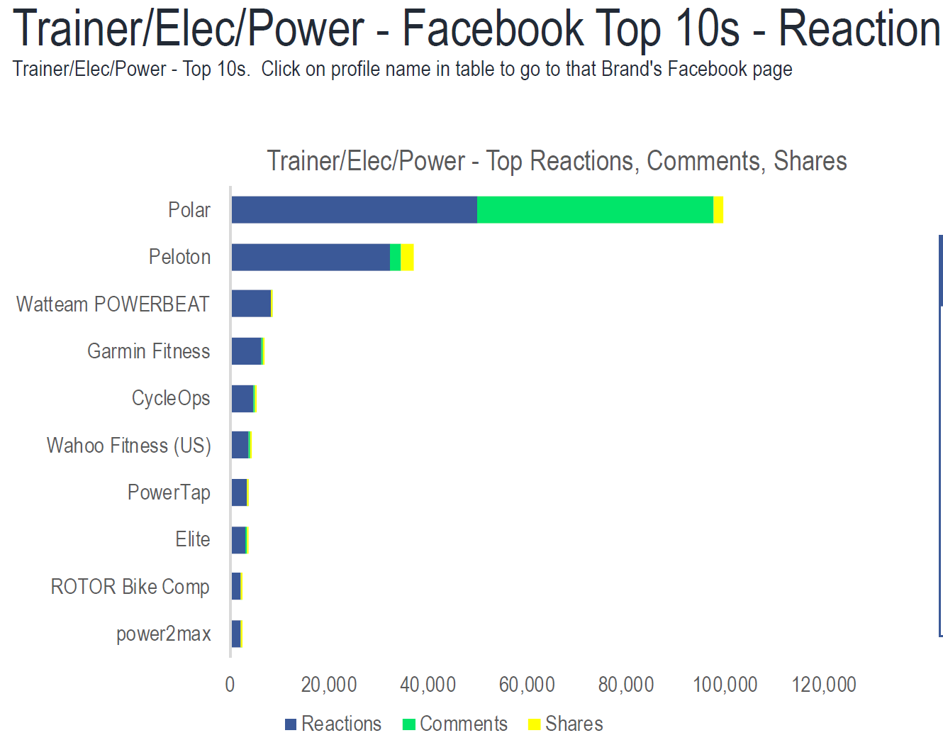 Yet Garmin’s position in this media channel is very much of the ‘mature’ kind ie growth opportunities may be limited. So it does not appear in the charts showing brands that are actively growing their video coverage and following, which include: Peloton, Watteam, SRM, Wahoo, Quarq, Tacx, Wattbike, Power2Max and others.