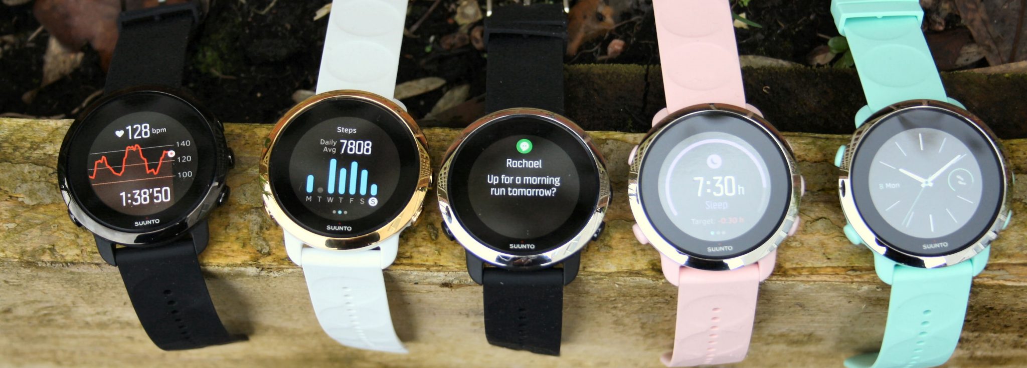 Here are a few images to show the full 3 FITNESS range (some of them are dummy units) and then a visual comparison to selected, other Garmin/Suunto models.