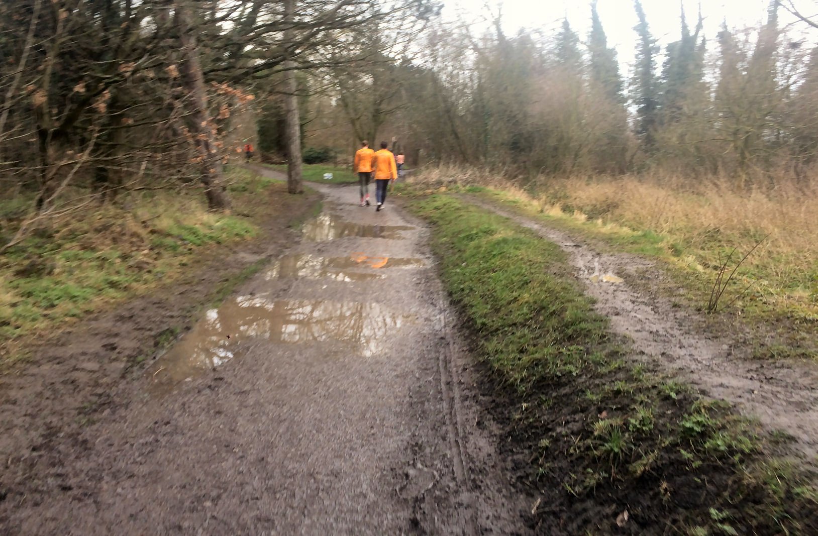 The whole course is fairly flat, apart from one short-and-steep hill towards the tram line, then a longer and shallower downhill, back towards the flat. The course is mostly on trail paths, with a small section on grass. The paths were extremely wet and muddy – everyone had muddy legs and feet by the finish. This is definitely one that would be nicer in drier weather. Numbers seem to sit consistently between 100-150 runners, which is relatively small and does mean there isn’t a lot of congestion on this course.