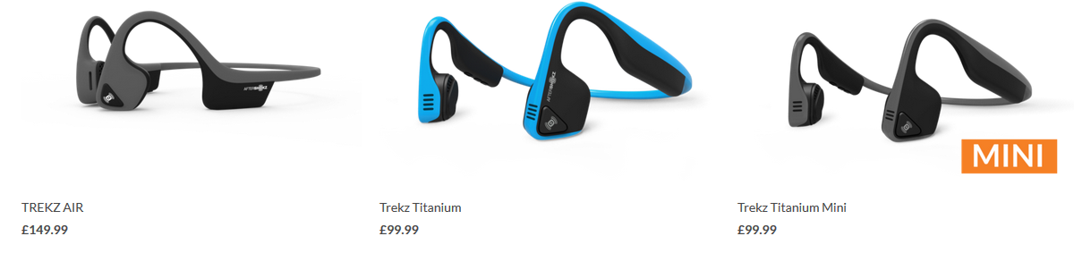 Aftershokz make both wired and wireless headphones. The Trekz Air is the ‘wireless brand’ which has the premium AIR model and the base-level TITANIUM model as well as a mini version.