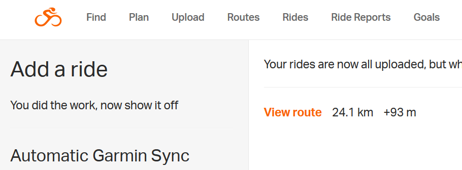 You will get the following screen once it’s uploaded and it’s not obvious what to do with it. You need to click where it says “View route” in orange.