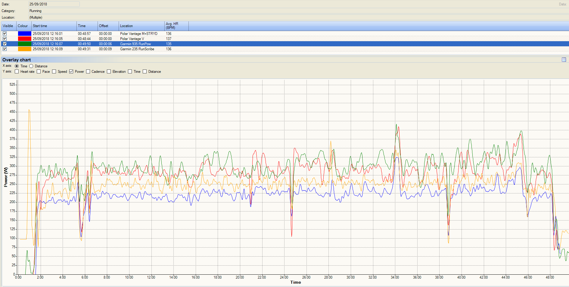 This post is really a cry for help. What do you guys/girls actually want me to do with ‘user testing‘ this running power data? It clearly is not easily comparable across the 4 technologies.It probably NEVER will be. Sure I could smooth the curves further and look at comparing averages over 1km intervals with scaling factors.
