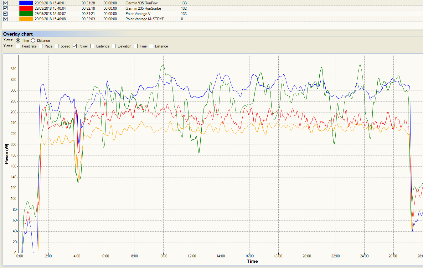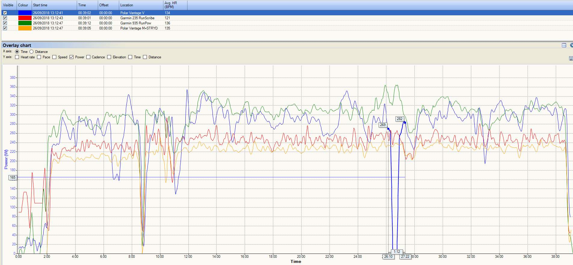 For my part i think the graph show alot of what i need. Comparison between different technologies – I don’t really see the need, for my part i prefer to use on (Polar) and stick to it imstead of having dozens of watches, pods HRmonitors etc. I did that with Footpods early this year, after having tored on slow response on pace shifts by GPS on my M430, I been using Polar stride sensort and all worked fine. For some stupid reason I thought RunScribe Pro would be better, but it never got instant pace as I had hoped, seems all effort went into the Plus. Then I switched to milestone Pod but the calibration always seemed to drift so now I am back to poars stride sensor again, despite not having running metrics and being BIG, i still prefer that one and spent money on pods that are now sleeping in a box… I do see that It might be insteresting to dig out the RS now and then to use to see how my stride have changed, but that was not my originally intended purpose.