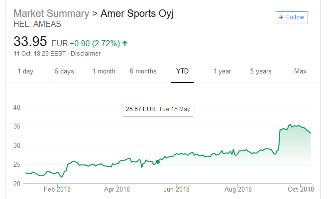 The share price rose in September when initial discussions started, which seem to be based on interest initially in Amer’s ENVE and MAVIC brands. I would imagine it unlikely that parts of the business will be sold piecemeal. Those that are left behind in such a scenario would have proportionately higher overheads to cover, which would not be great.