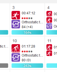 These are some of the on-watch screens that you will see outside of a workout. So here we see some of the higher-level training status screens, the orthostatic test results and activity status screens. Also shown are some of the screens you see before and after a workout.