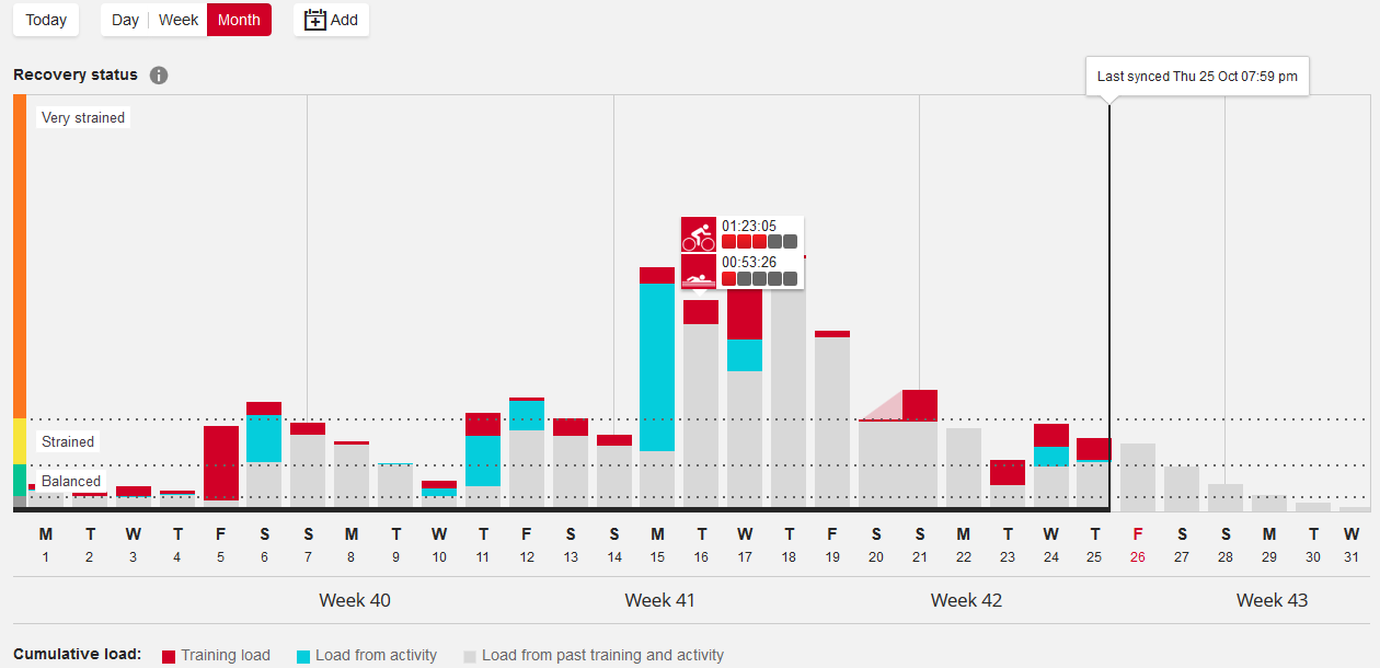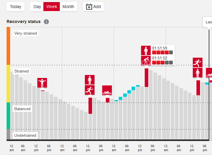 M & V both have Training Load Pro which encompasses the load from your workouts based on HR (Cardio load using TRIMP); the sports-specific physical loads placed on your muscles during workouts (Muscle Load – measured by power in running and cycling); and your Perceived Load (like RPE).