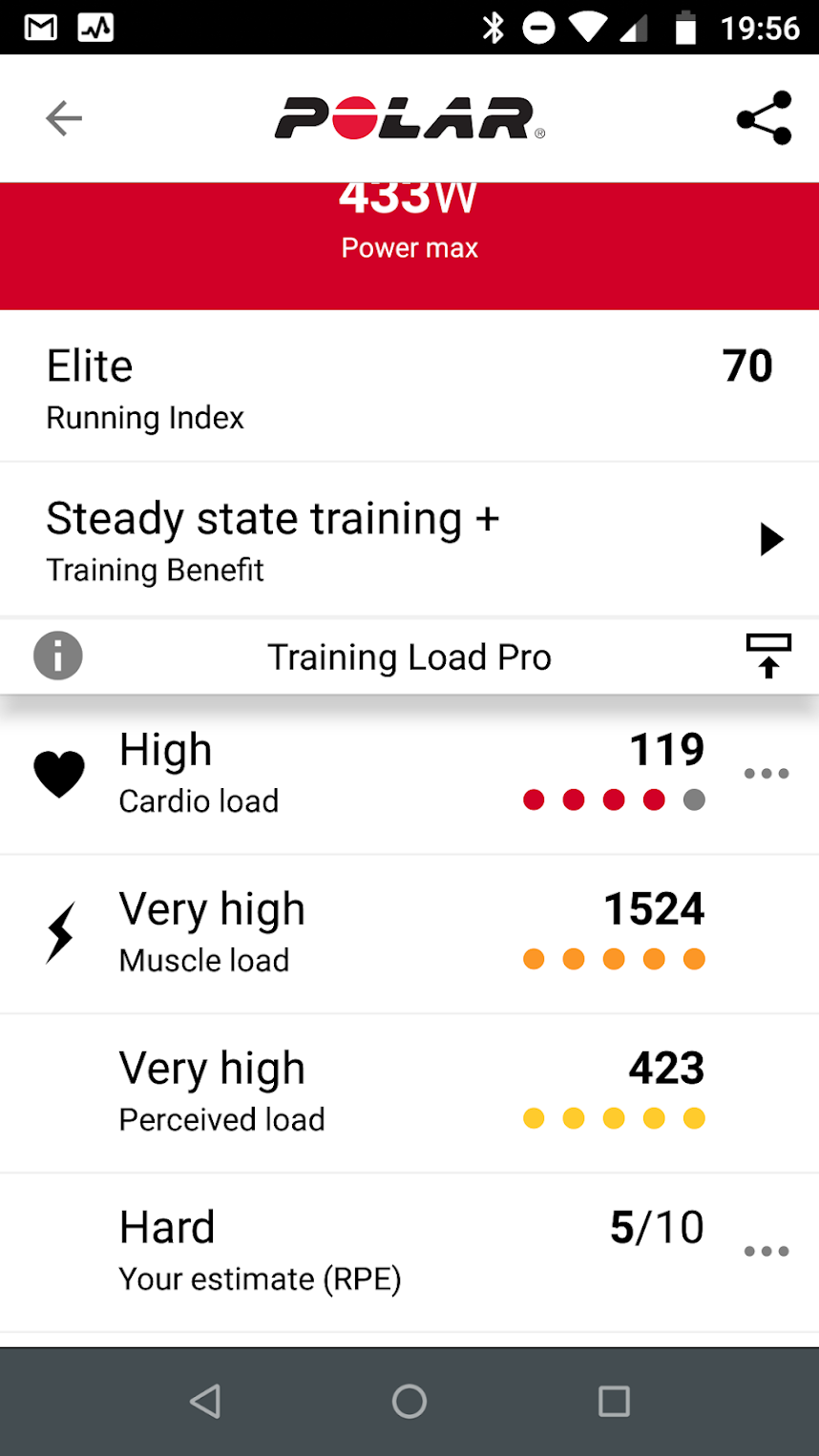 - Training Load LEVELS are also produced and it looks like these are used in an adaptive way – still based on TRIMP but also on your recent workout performances.
