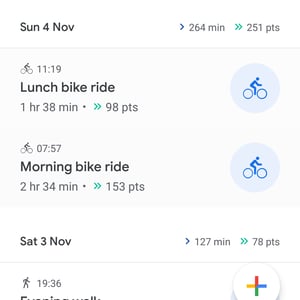 The exercise tiles appear if you complete a workout – some activities like this 75-minute run were automatically detected