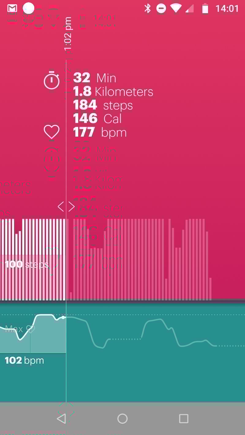 As shown below this will give you: a trend of resting HR over time; your sleep trend over time; and more minute-by-minute detail on any workout – you can even tap and hold the activity bars to see more detail.
