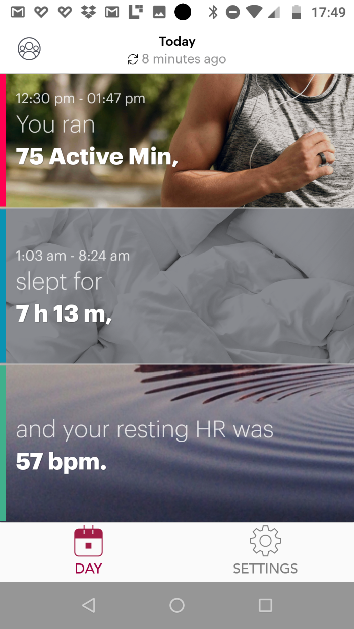 The Motiv Ring app is clearly designed to provide straightforward and actionable information and it achieves that with an easy-to-understand ’tile’ view, which usually fits onto one single, scrollable screen on your smartphone.