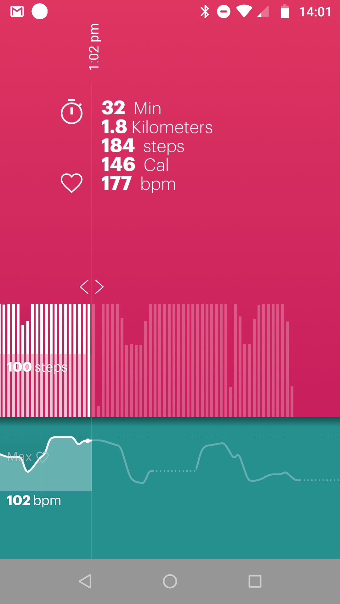 The actual total distance was just over 14km. The Motiv Ring does over-estimate the heart rate and hence the calories but the likely calories used were 970 based on Polar FLOW, so 1030 is a reasonable estimate by Motiv. My Polar device made the total number of steps 12975, so 12290 is also a reasonable estimate by Motiv – bear in mind that Motiv might not have the start and end points exactly the same but would still have included all the steps in the total for the day (rather than just those in the workout)