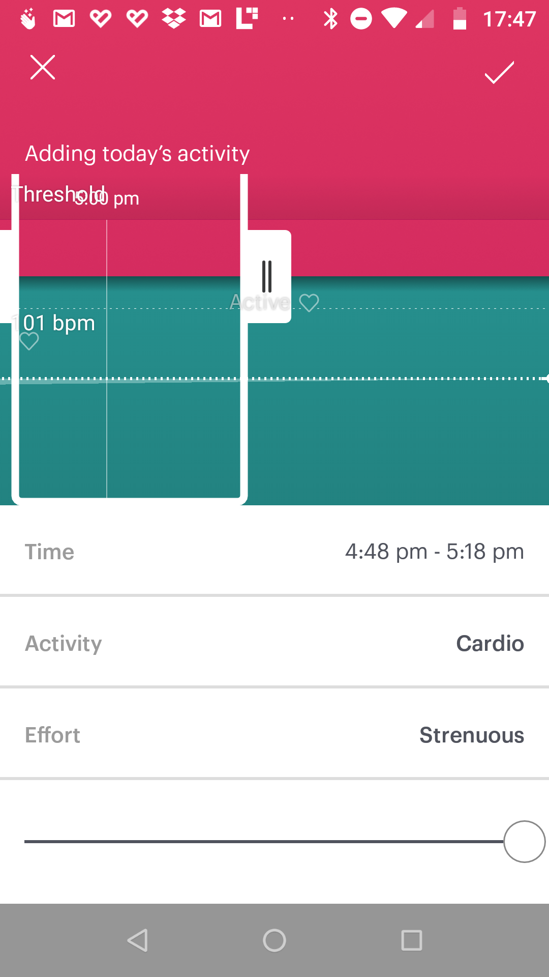 However, in other activities like cycling, your hand/ring will hardly be moving and Motiv cannot detect the sport so easily. Your raised heart rate will still be fully automatically recorded and you can optionally add a period of time as a workout – as shown on the image to the right.