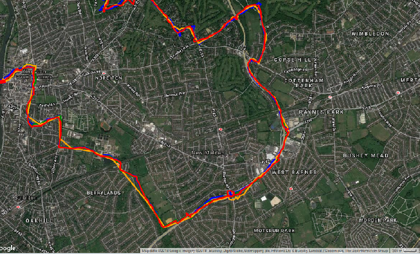 Even the V800 is wrong here. When I was running next to the words “Hogsmill River” is also running next to a large, 3m high, metal fence (hence bad GPS reception)
