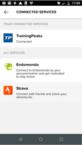 Previously, the Suunto app only had data sync links to STRAVA and Endomondo – as shown in the earlier images. It makes sense for any serious sports data creator to link to Training Peaks…even the Sleep Monitor QS.EMFIT does that and has done for a while. So this is a good, but late, move by Suunto for their app. It would be EVEN BETTER if Suunto provided a DROPBOX app and then we could MORE EASILY use our own data wherever we wanted. Like loading it into Golden Cheetah, for example. Lots of serious athletes use Golden Cheetah and not Training Peaks. C’mon Suunto/Polar, you need to do the same as well…Wahoo did it.