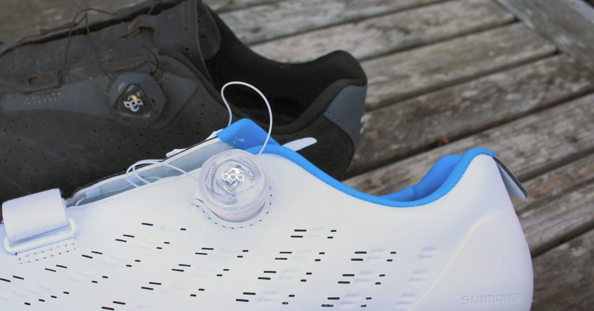 Both these shoes have a near-identical BOA IP1 mechanism – the twisty knob on the outer side of the show. The Shimano shoes have a slightly more clever way of running the cord which the BOA tightens to close the shoes, it’s mostly hidden away out of sight. So the Shimano RP901 look to have cleaner aesthetic lines than the Fiziks and there are likely, but trivial, aero benefits too for the Shimanos as a result. But, if I’m honest, when I use these in a Spring TT, I’ll wear VeloToze overshoes so any aero advantage is irrelevant to me.
