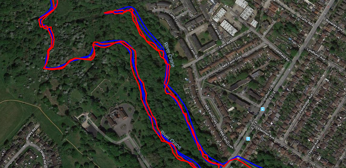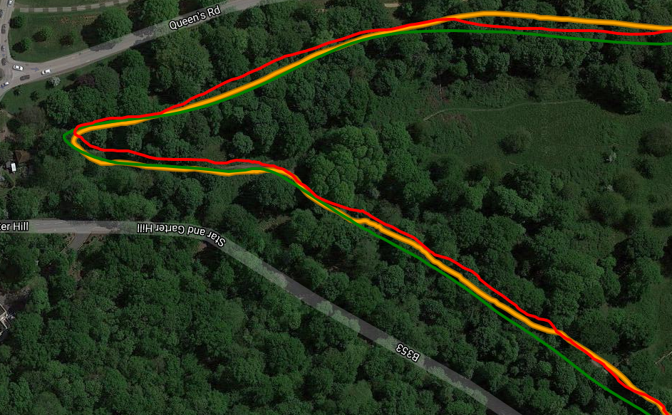 But the negative theme continues with this easy run where the Apple Watch loses the plot (Blue) and this track is well and truly POOR.