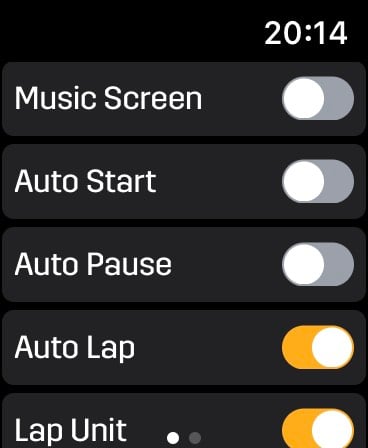 – Data display size. Yes, the colors are bright and vivid, but, in general, they are too small for me, especially during intense workouts. Choosing fewer data elements doesn’t do a lot to increase size either. The AW just seems to remove the line, but doesn’t make the remaining text significantly larger. Lots of blank/black space that could be used for a larger font. Even if you select single metric and scroll up/down to see each metric on it’s own page, too much of the screen is left unused. Why not increase font size and use the space?