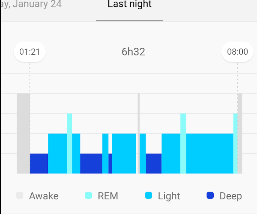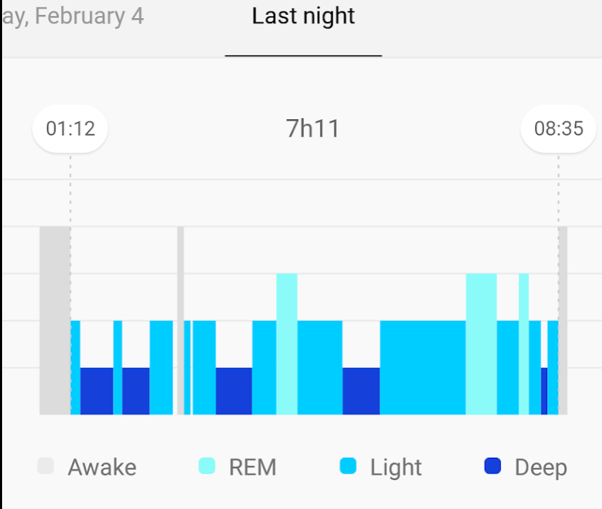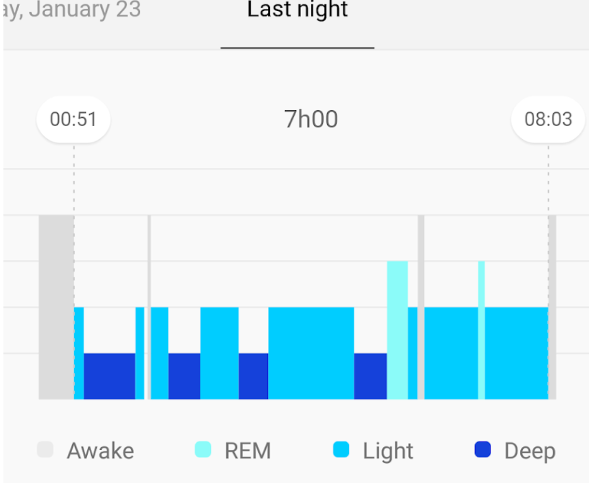 Let’s look in a little more detail at the SLEEP data that gets into the Android app. I’m assuming that the iOS version is similar and there is certainly very similar information on the web platform as well.