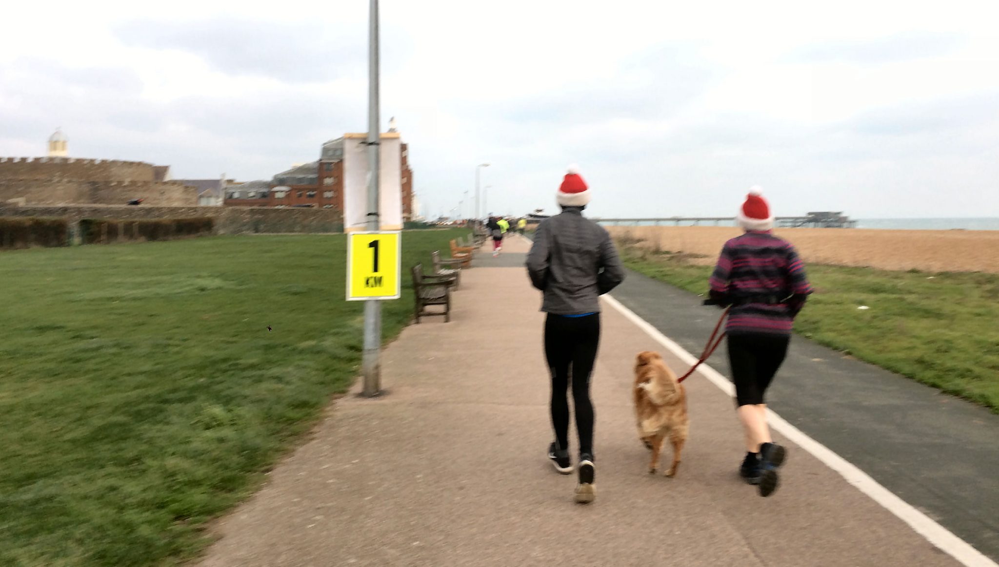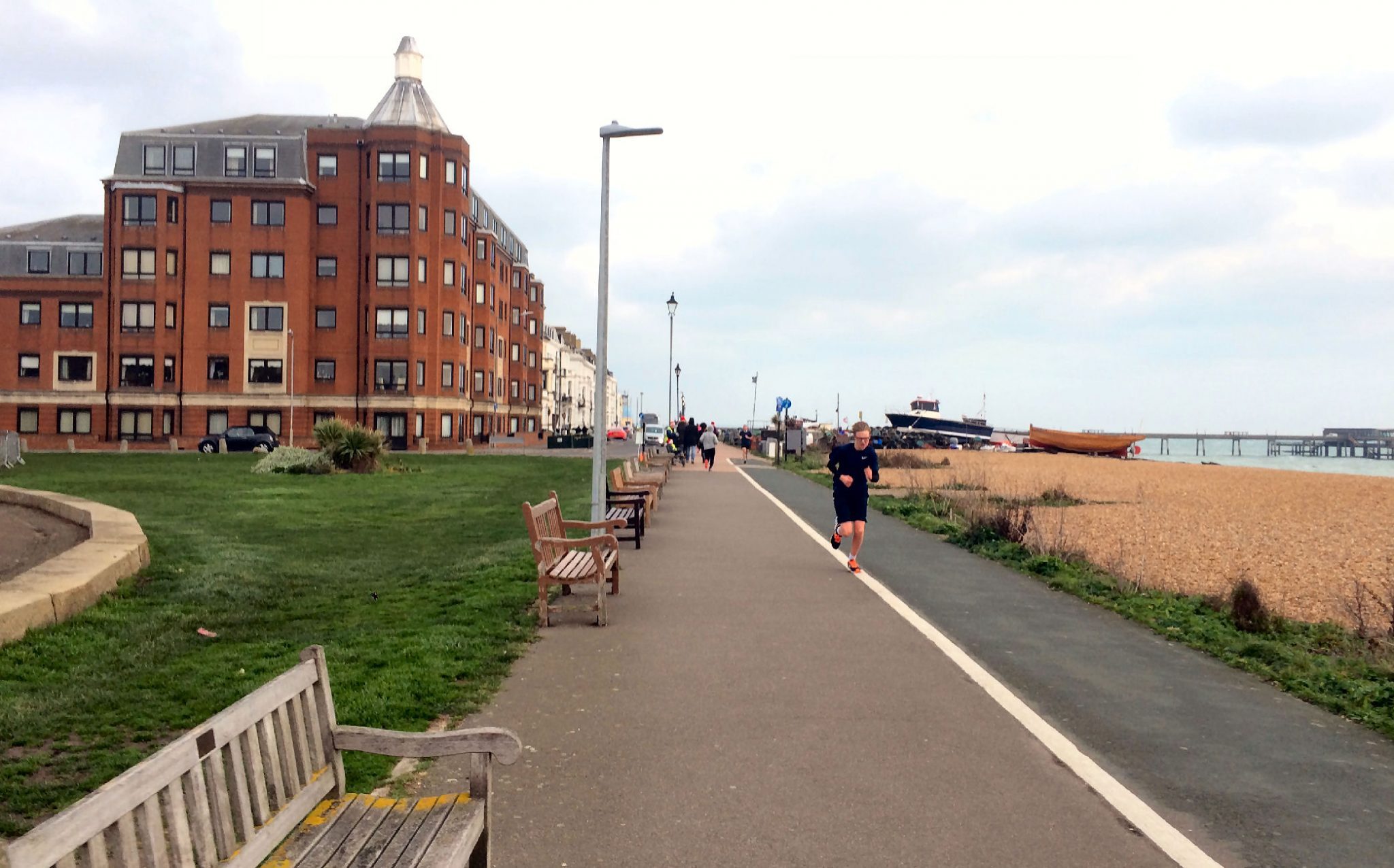 The start and finish lines are in the same place, on a section of lawn behind some hedges (as you walk from the direction of the car park). From the start, you head north towards Deal Pier for about 1.5km. When you reach the green statue (there will be a marshal there), run around it and then head back. Once back at the starting point, head south for 1km, turn at the marshal and then run 1km back to the start/finish. There are a few corners on the last 2km, but they are marshalled and it’s impossible to take a wrong turn. Walmer and Deal Seafront parkrun is set back a little way from the beach and in fact I couldn’t really see the beach for most of the course. We were all warned beforehand that the Lifeboat Rescue crosses the route and we must give way should there be a Lifeboat emergency, but we were fortunately uninterrupted on the day. Keep an eye out for the castles on the route; Deal Castle at the northern end and Walmer Castle at the southern end.