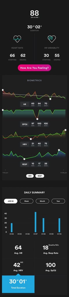 I love Biostrap’s wealth of insights and features around the basic train & sleep stuff….meditation, deep sleep analysis, and physiology data sharing.