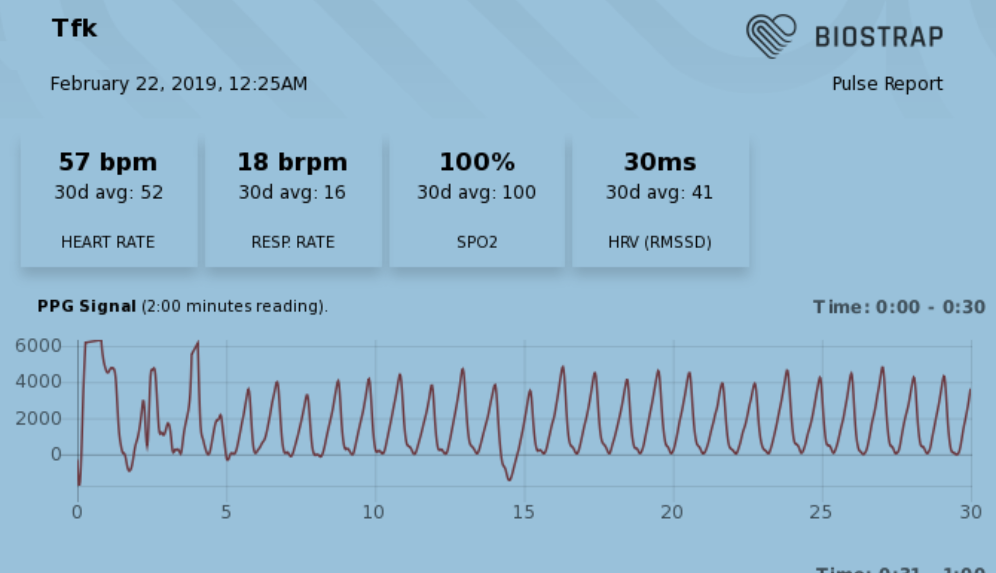 Some of Biostrap’s validation studies also point to the measurement of Heart Rate Variability (HRV) – which you might also see referred to alongside these terms IB, RR, RMSSD. HRV, in my opinion, is a good measure of combined physical and mental stress. Biostrap’s measurement of HRV can only be accurate at resting levels and the best time to take these readings manually is when you wake up and when you go to bed. Biostrap also takes these readings periodically throughout the day.