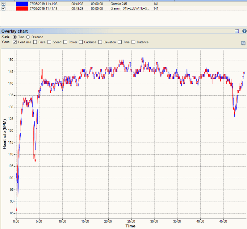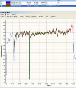 On a different day, the 945 has GPS+GALILEO enabled and I’m wearing a Ticwatch as well. As you can see, the 945+GALILEO is no better than the 245+GPS but is, perhaps, a little smoother. These are easy conditions and the 245 does well on this section of Bushy Park which cuts across both the current Bushy parkrun course (v3) and previous course (v2). v1 was the best course, of course…in the good old days, things were always better, even my 5k running speed.