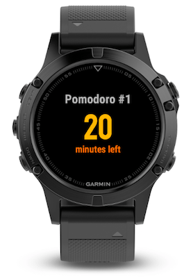 The developer says, “A Pomodoro timer app for all Garmin devices! Use the Pomodoro technique (https://en.wikipedia.org/wiki/Pomodoro_Technique) to increase your productivity.”