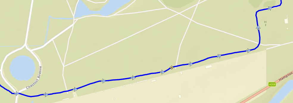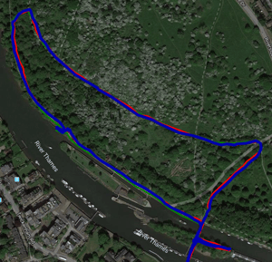 Here I am jogging along part of the Bushy Park parkrun course and the track is followed surprisingly perfectly. There are no GPS obstructions apart from the occasional tree.