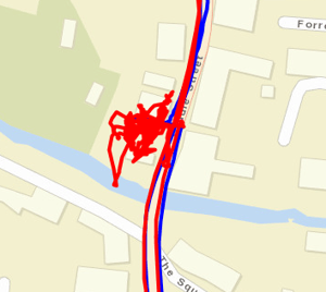 These are 3 ‘events’ from a 100km ride. These were my only concerns with what was recorded, ie trivial events in the grand scheme of things. The first image is zoomed in from the larger image above where you can see a glitch in the Instinct’s track. Perhaps not a problem. But then the two subsequent images are when stationary, the first for a coffee stop in Shere and the second waiting for someone to catch up. The GPS+Galileo track is clearly moving about quite a lot. I don’t really have an issue with this for a pause in a cycle ride but it does not bode well for navigating when hiking if the track jumps around this much at slow speeds.