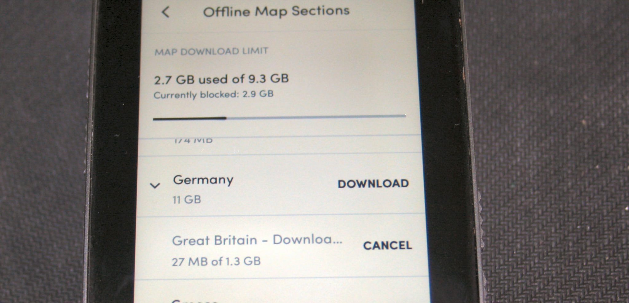 The main part of this update is the move towards LARGE OFFLINE MAP REGIONS. Previously there was always an extra step required to ensure the correct part of the global map had been off-lined for your next route. Now you just download your entire country in one go and you are then good for ever more.
