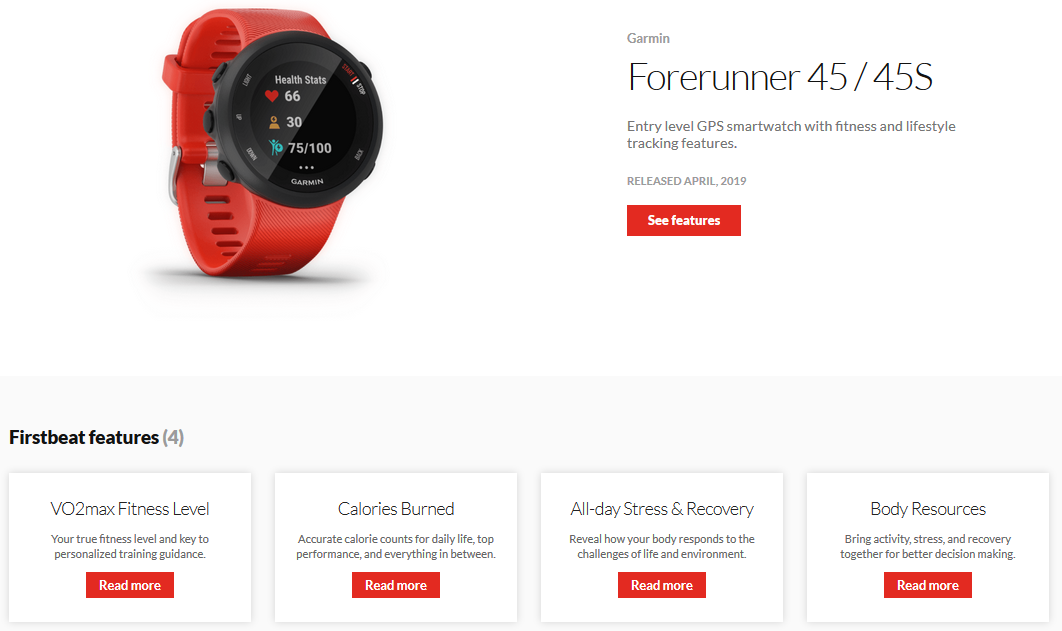 Garmin Forerunner 45 (45s) Specifications & Comparison